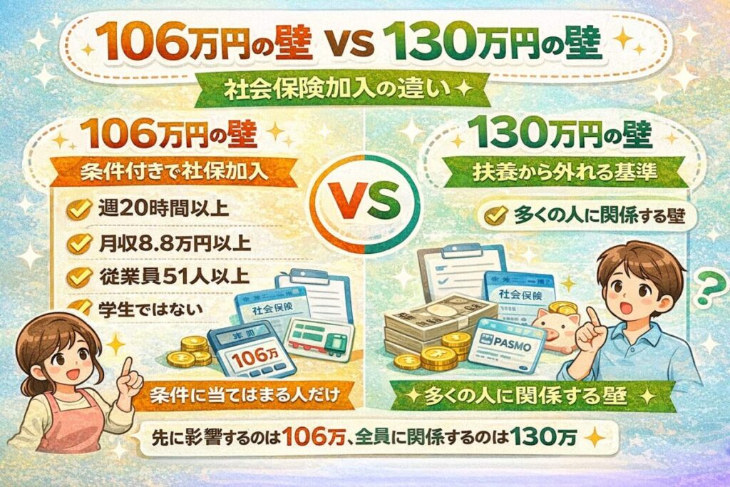 106万円の壁とは?対象になる人・ならない人をやさしく解説|社会保険の壁130万円との違い